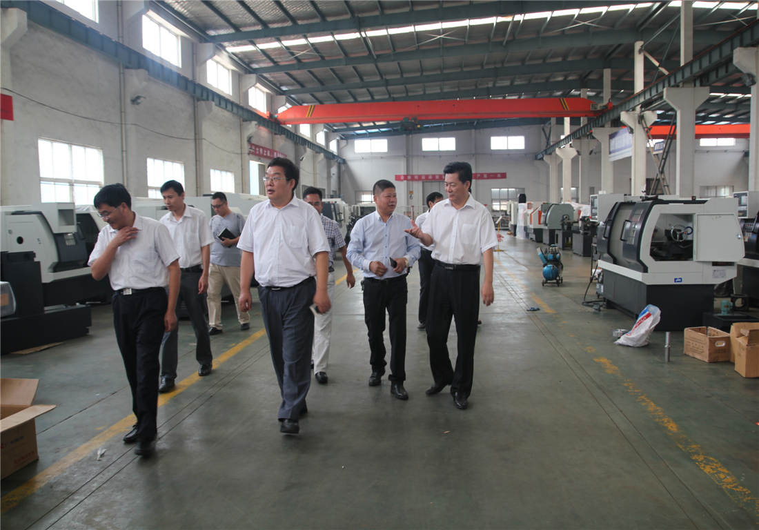 林董事長就公司當(dāng)前企業(yè)經(jīng)營狀況及發(fā)展規(guī)劃等向市領(lǐng)導(dǎo)做了簡要匯報。隨后,傅廷安主席等市領(lǐng)導(dǎo)來到了公司生產(chǎn)現(xiàn)場,實(shí)地查看了公司生產(chǎn)及科技創(chuàng)新情況。當(dāng)走到公司與天津大學(xué)聯(lián)合研發(fā)的匹配桁架式機(jī)器人斜床身數(shù)控車床-TCK6336S產(chǎn)品前時,領(lǐng)導(dǎo)們駐足良久,并詳細(xì)聽取了林董事長關(guān)于公司開展的機(jī)器人應(yīng)用技術(shù)研究情況,以及產(chǎn)學(xué)研合作成果的介紹。