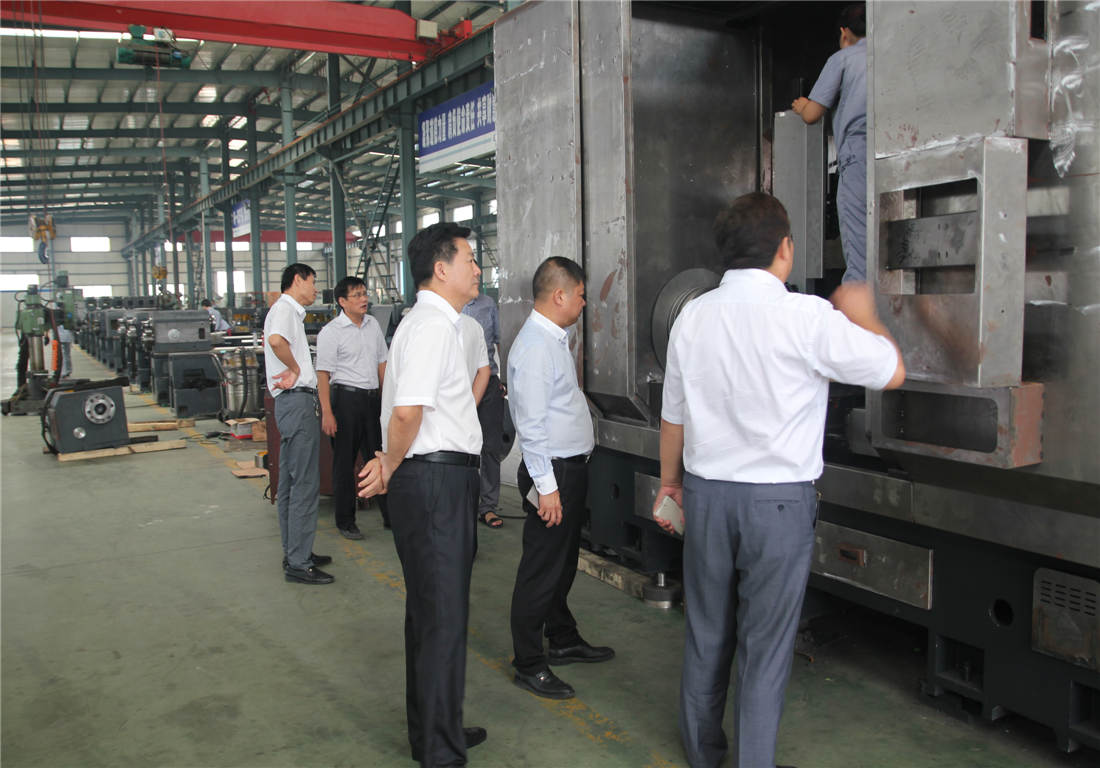在看到公司自主研發(fā)的填補(bǔ)國內(nèi)外空白產(chǎn)品-供新加坡客戶的SHK20大型六軸五聯(lián)動數(shù)控激光焊接管螺紋車床時,領(lǐng)導(dǎo)們尤感興趣,察看的同時,仔細(xì)詢問了課題立項及研制情況。在聽取了林董事長的介紹后,傅廷安主席等市領(lǐng)導(dǎo)高度評價了公司近年來的快速發(fā)展和在高檔數(shù)控機(jī)床研發(fā)與制造方面所取得的顯著成績。同時,對公司今后的發(fā)展規(guī)劃給予了充分肯定,并對一些有關(guān)企業(yè)發(fā)展的重大政策問題,提出了指導(dǎo)性建議。
